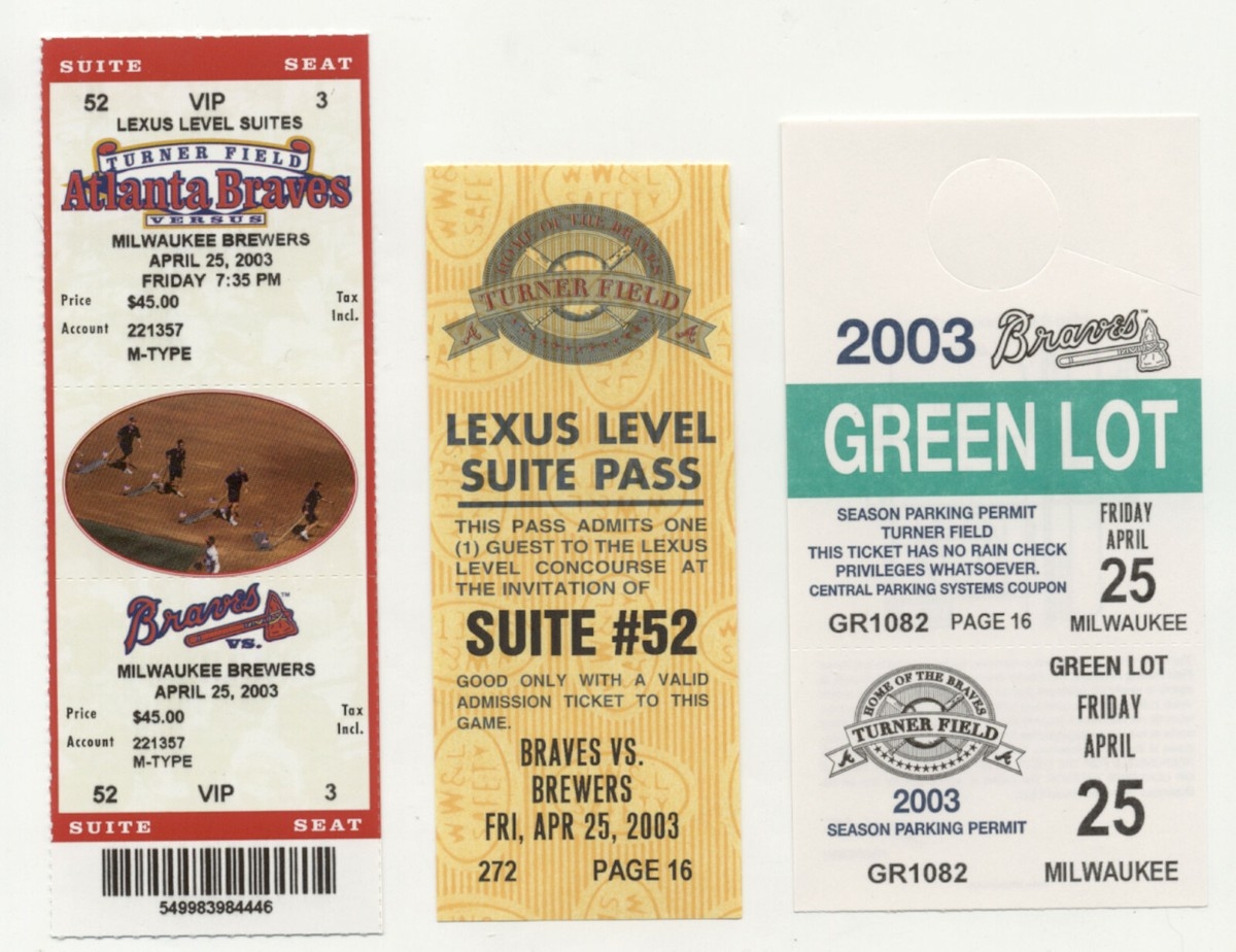 Atlanta Braves Vs Milwaukee Brewers April 25 2003 Unused Suite Ticket Extras EBay