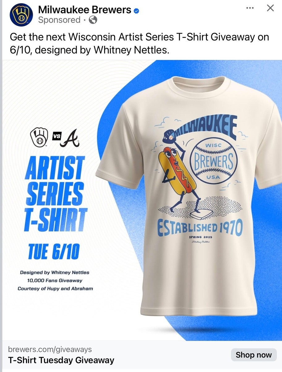 2025 Milwaukee Brewers Artist Series XL Hot Dog Shirt 6 10 25 Free Shipping EBay