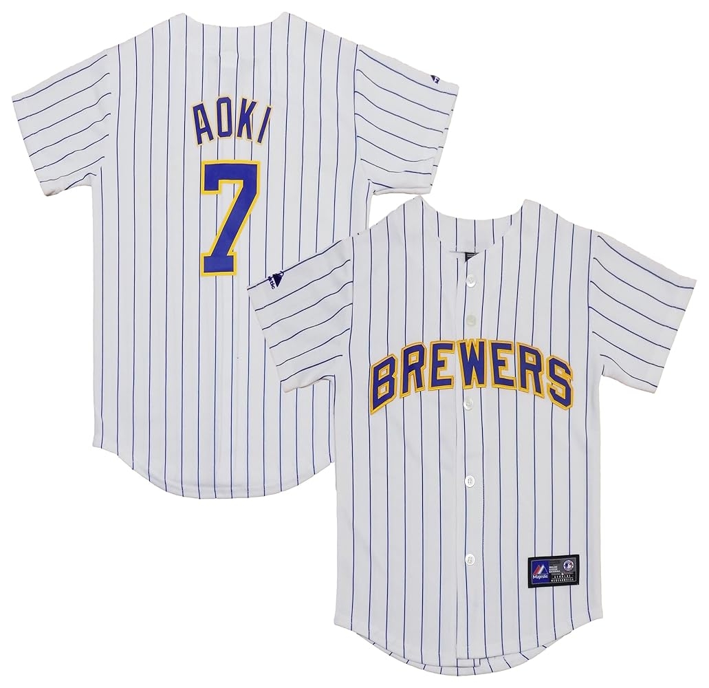 Amazon Norichika Aoki Milwaukee Brewers White Youth Authentic Home Replica Jersey Medium 10 12 Sports Outdoors