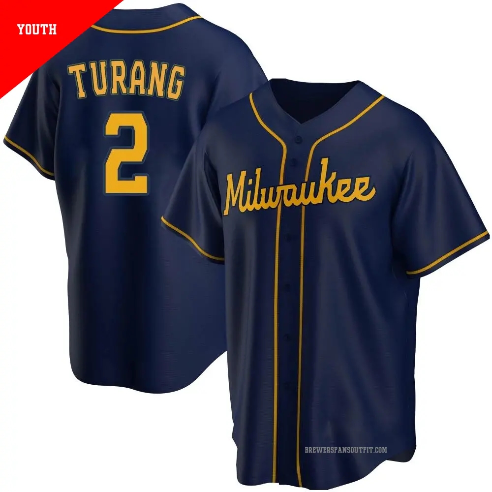 Men s 2 Brice Turang Milwaukee Brewers Navy Limited Alternate Jersey