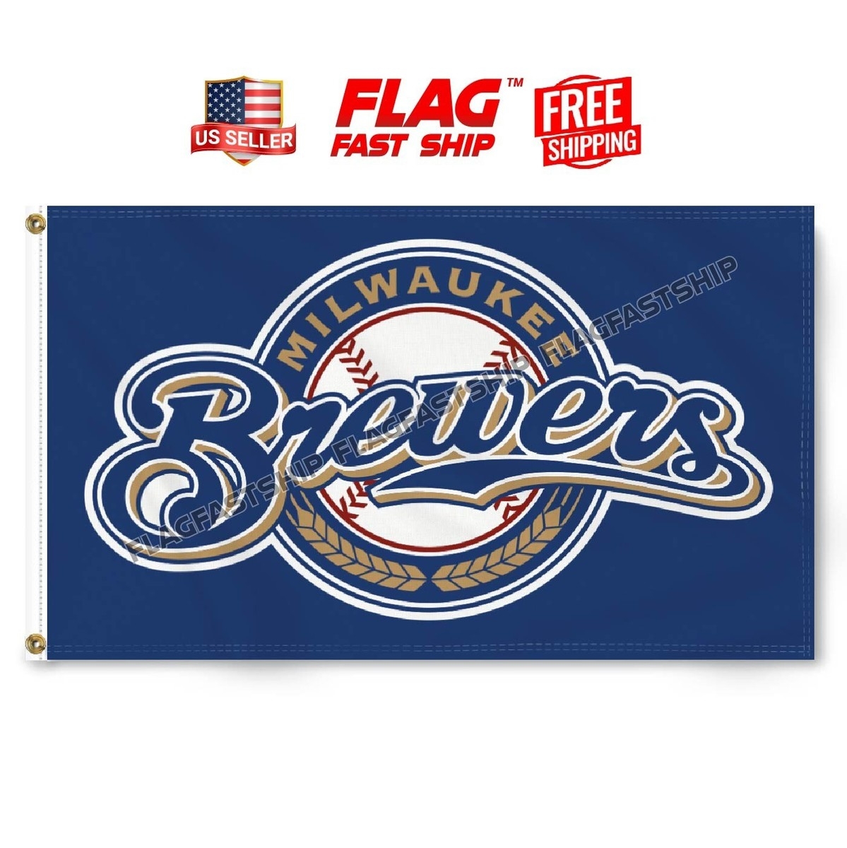 Milwaukee Brewers 3×5 Ft Flag Banner MLB Man Cave W Grommets NEW FREE Shipping EBay