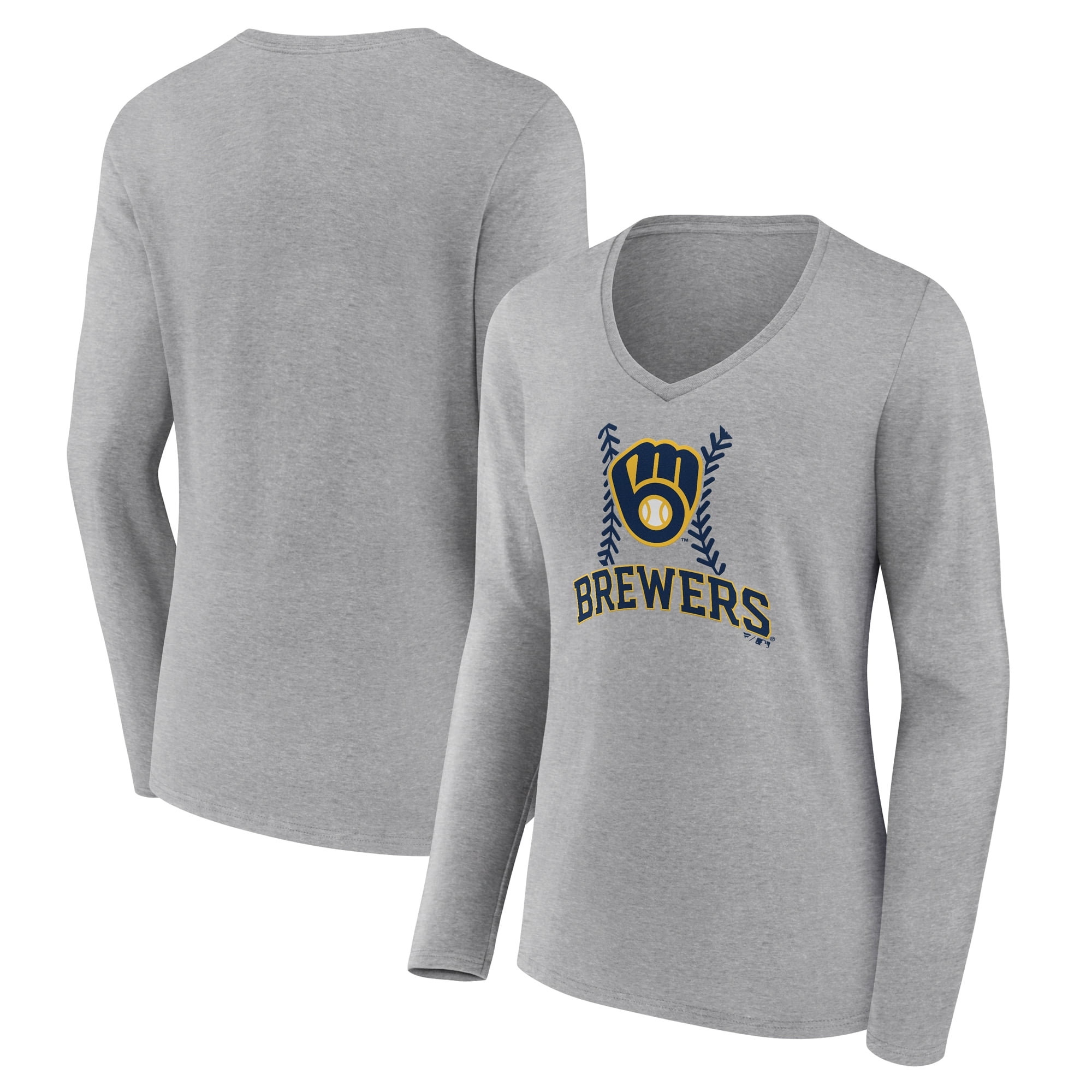 Women s Gray Milwaukee Brewers Fastball Long Sleeve V Neck T Shirt Walmart