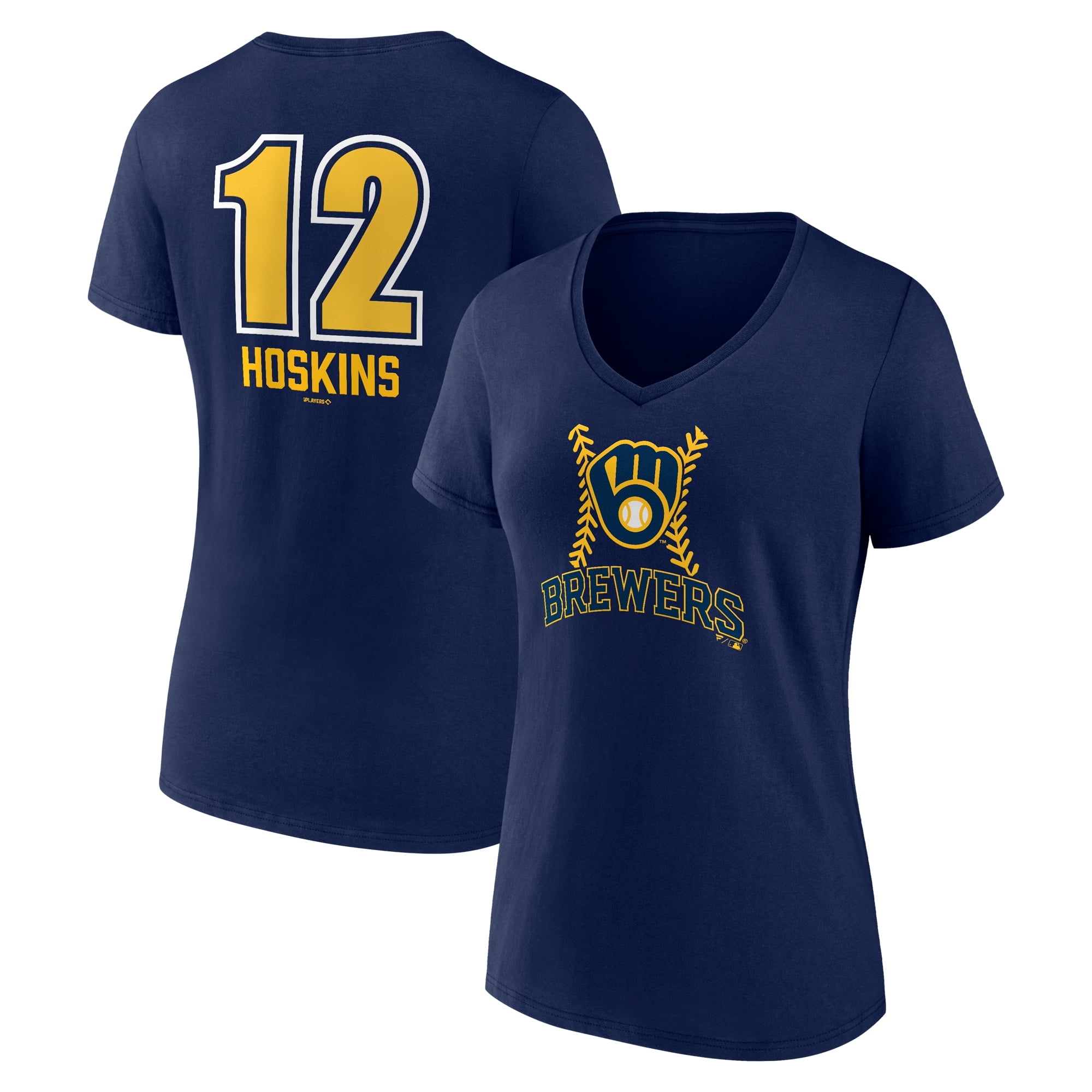 Women s Rhys Hoskins Navy Milwaukee Brewers Name Number Fastball V Neck T Shirt Walmart