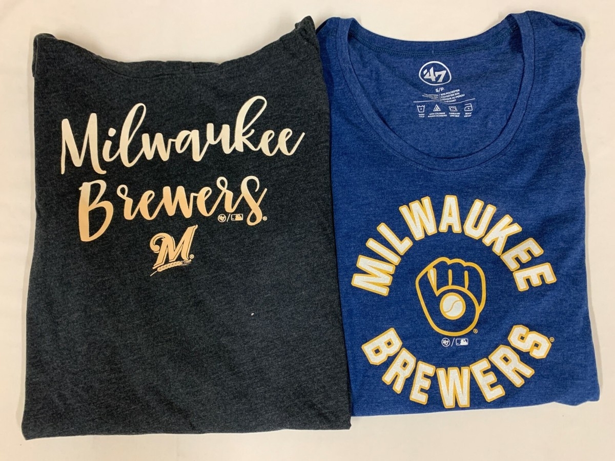 Milwaukee Brewers Women s T Shirts Size S 47 Brand Short Long Sleeve Lot Of 2 EBay
