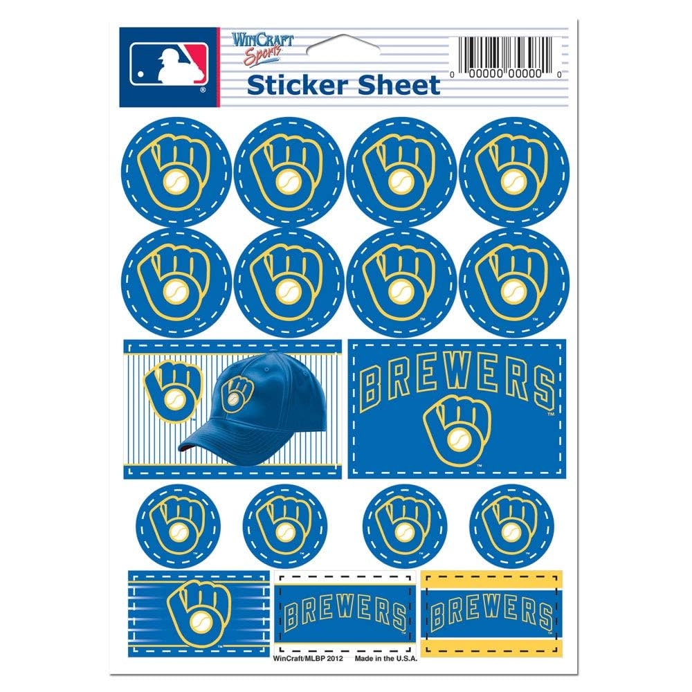 Amazon Wincraft MLB Milwaukee Brewers 27169012 Vinyl Sticker Sheet 5 X 7 Sports Fan Wall Decor Stickers Sports Outdoors