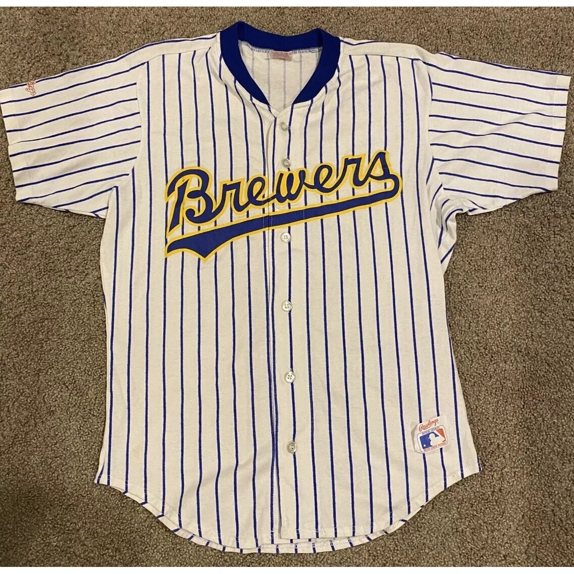 Vintage Milwaukee Brewers Rawlings Pinstriped Baseball Jersey Mens XL USA 50 50 EBay