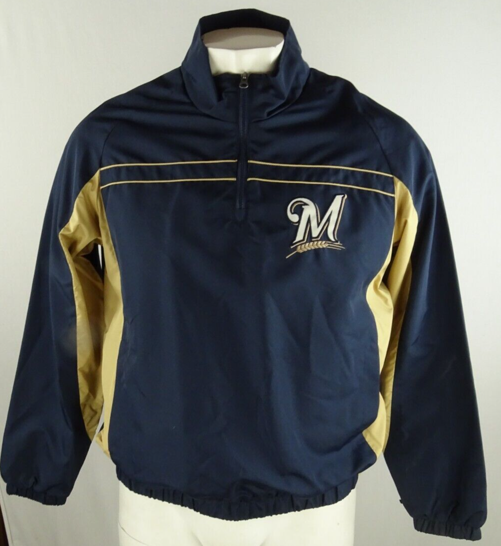 NWT MLB Milwaukee Brewers Hooded 1 2 Zip Pullover Windbreaker Jacket Size L EBay