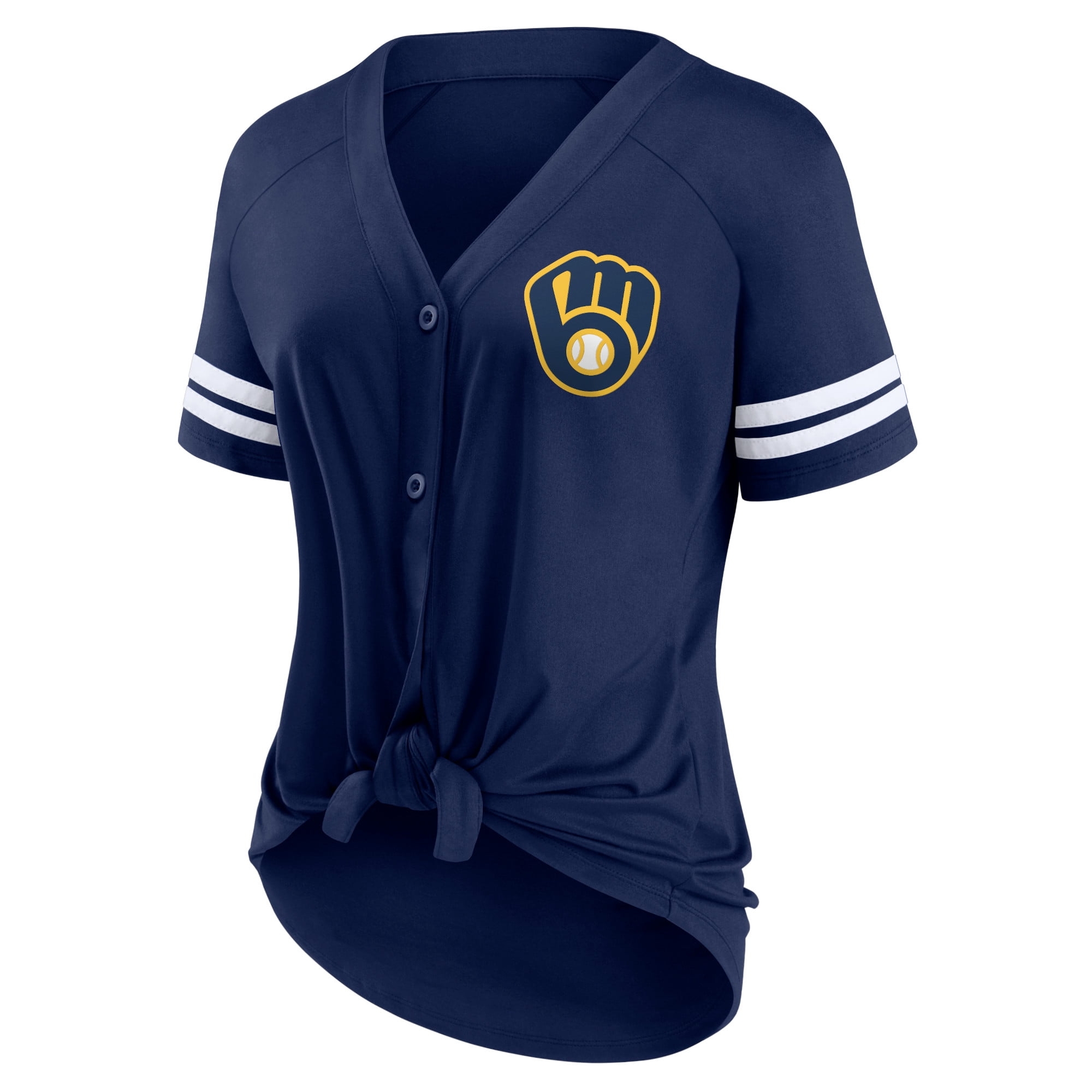 Milwaukee Brewers MLB Home Run Women s Tie Front Jersey With Striped Sleeves Walmart