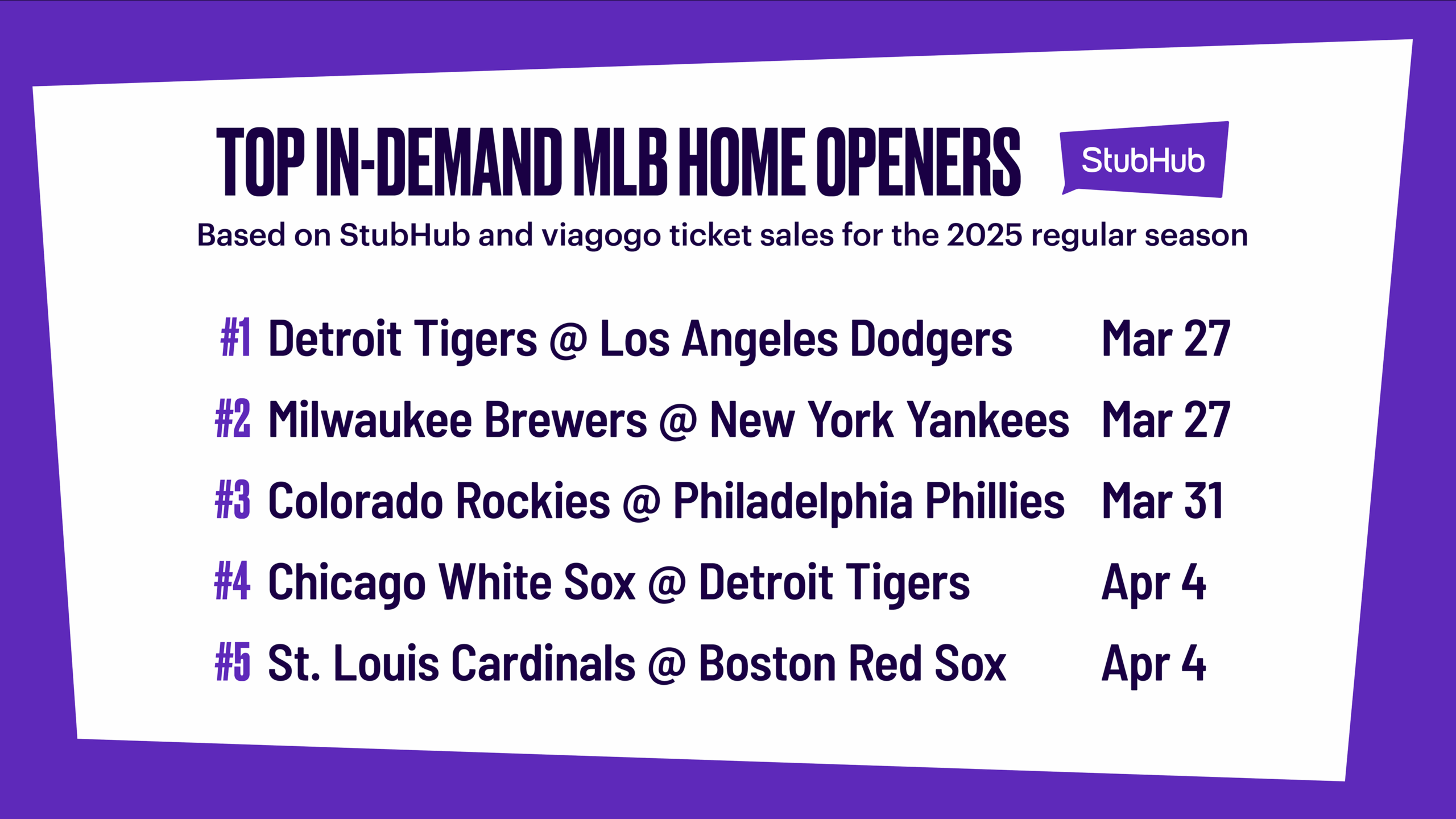StubHub Support 2025 MLB Preview